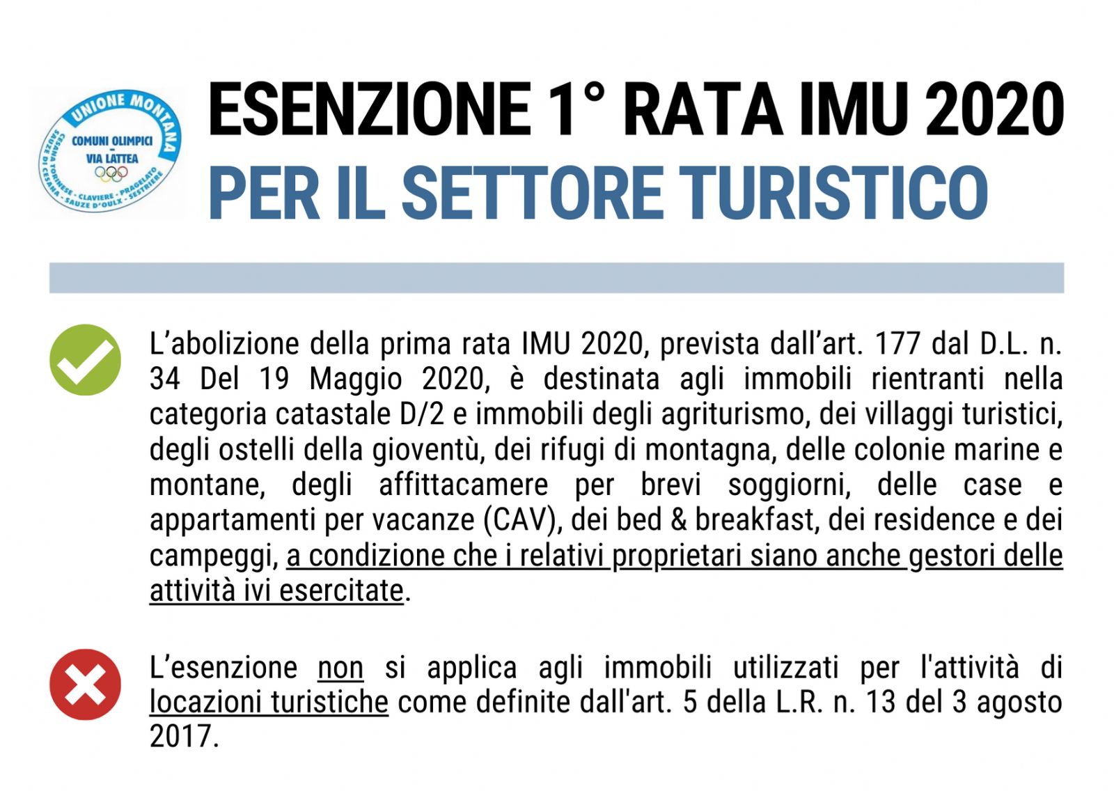 ✔️ L’abolizione della prima rata IMU 2020, prevista dall’art. 177 dal D.L. n. 34 Del 19 Maggio 2020, è destinata agli immobili rientranti nella categoria catastale D/2 e immobili degli agriturismo, dei villaggi turistici, degli ostelli della gioventù, dei rifugi di montagna, delle colonie marine e montane, degli affittacamere per brevi soggiorni, delle case e appartamenti per vacanze (CAV), dei bed & breakfast, dei residence e dei campeggi,