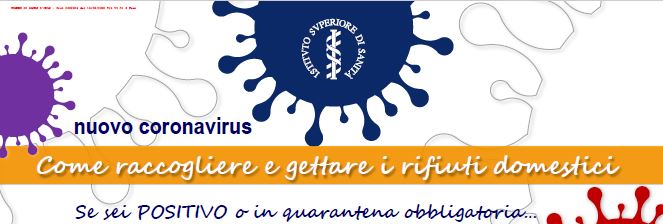 A seguito dell'epidemia di COVID-19, l'Istituto Superiore della Sanità rende note le modalità di smaltimento dei rifiuti riservate a coloro che risultano positivi al contagio o che si trovano in quarantena obbligatoria.