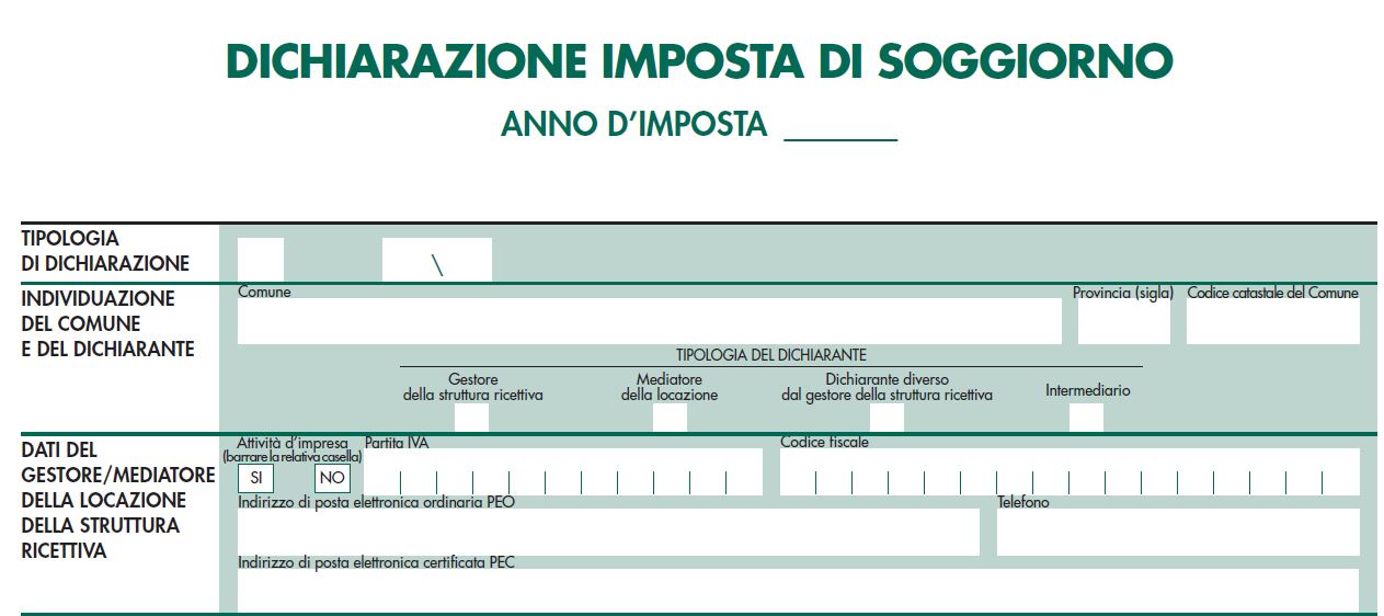 Con Decreto del Ministero dell'Economia e delle Finanze del 29/04/2022 entrato in vigore il 12/05/2022, è stato approvato il modello di dichiarazione e relative istruzioni, agli effetti dell'imposta di soggiorno. Il modello ministeriale deve essere utilizzato dai gestori delle strutture ricettive alberghiere ed extraalberghiere comprese le locazioni brevi e turistiche .