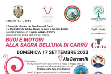 Le patate De.Co di Sauze d'Oulx saranno protagoniste, insieme alla pregiata carne di bue, alla Sagra dell'Uva di Carru'. La sagra si terrà il 17 settembre e, oltre al pranzo tipico, sarà animata...