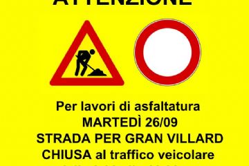 Comune di Sauze d'Oulx- asfalti- pratica sp 214 Grand Villard dal km. 5+250 al km. 6+050 tratti saltuari, eccetto il ponte Comba Gad- Chiusura strada