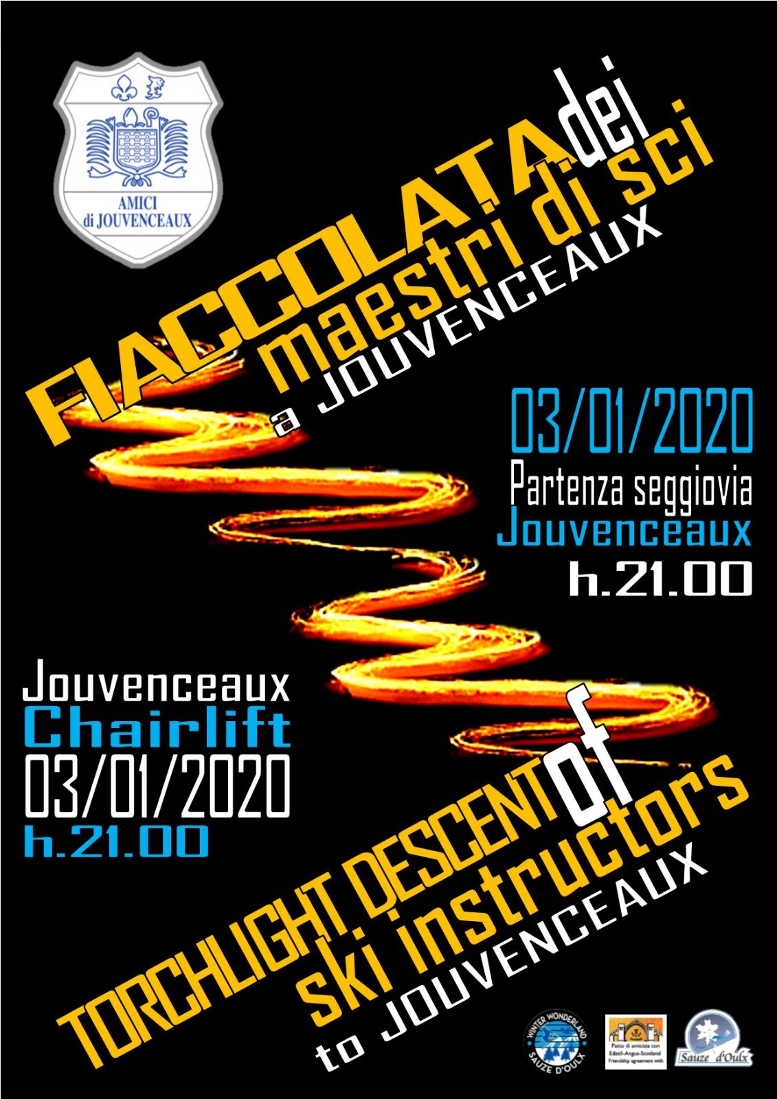 FIACCOLATA DEI MAESTRI A JOUVENCEAUX - Un evento sempre emozionante, una simpatica festa per grandi e bambini – Ore 21.00 Partenza seggiovia Jouvenceaux – Sportinia