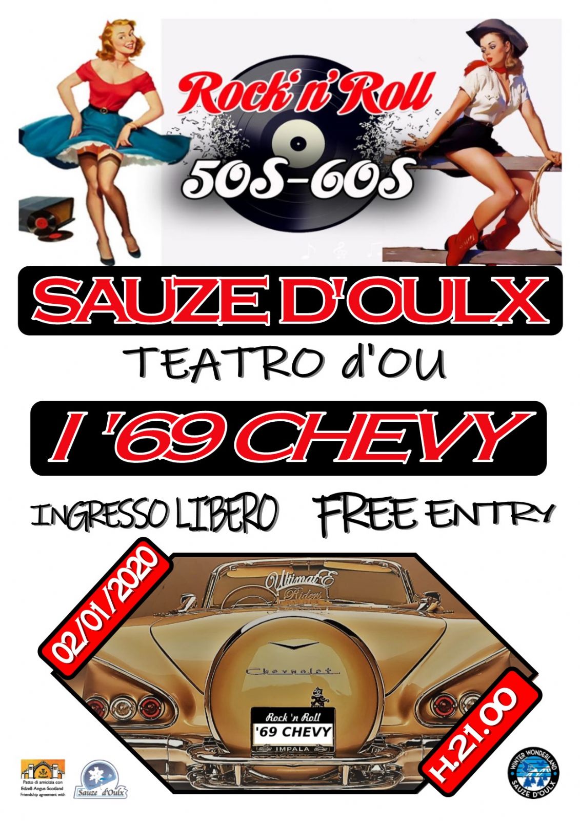 I ’69 CHEVY - Tutta l’energia del Rock and Roll degli anni ’50 e ’60. Il mito degli anni di Happy Days, il grande Elvis Presley e tutto il mondo U.S.A. dei favolosi anni ’50 in uno spettacolo entusiasmante. Ore 21.00 Teatro d’Ou. Ingresso gratuito