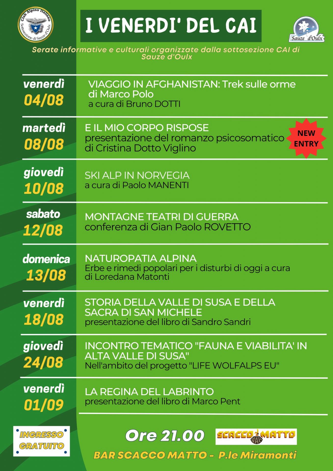 serate informative e culturali organizzate della sottosezione CAI di Sauze d’Oulx.