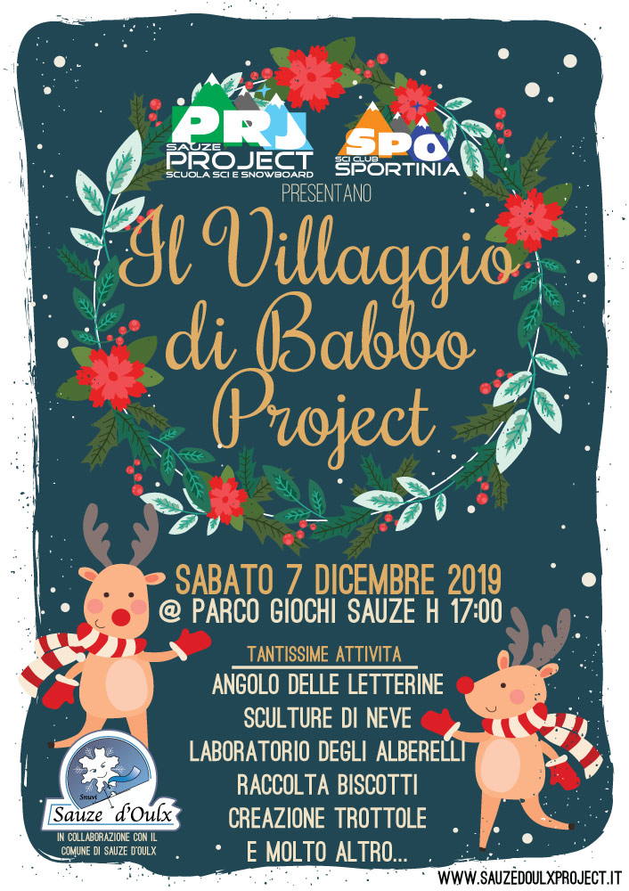IL VILLAGGIO DI BABBO PROJECT - La Scuola Sci Sauze Project, in collaborazione con il Comune di Sauze d’Oulx, organizza il “VILLAGGIO DI BABBO PROJECT” con tante attività e divertimento. Ore 17.00 presso Parco Giochi Comunale