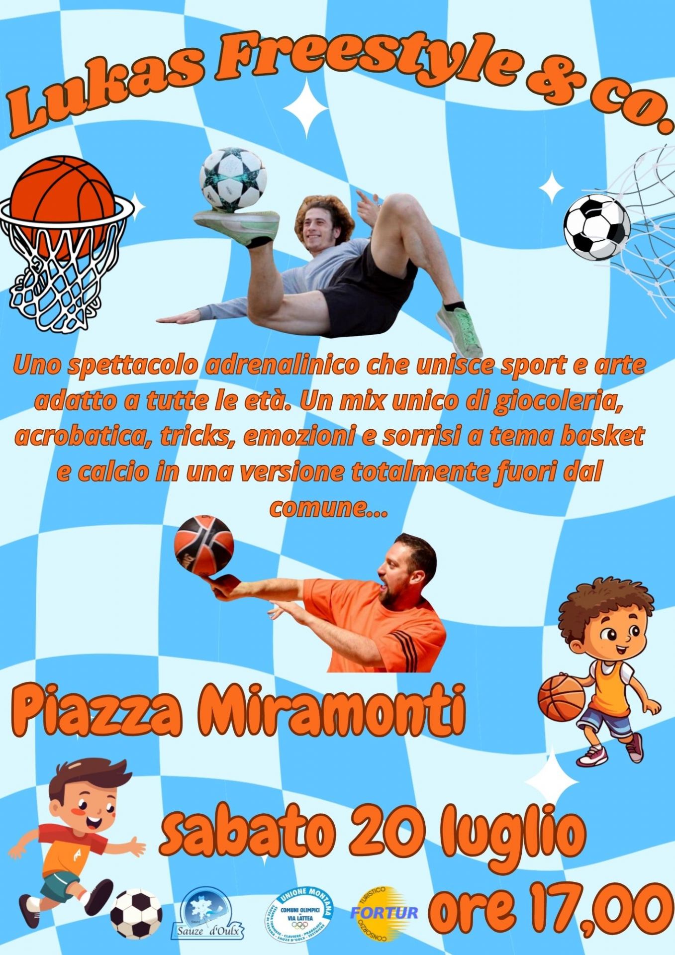 Spettacolo estremo di sport freestyle eseguito dalla crew riconosciuta a livello internazionale. Un appuntamento adrenalinico adatto a tutte le età. Un mix unico di giocoleria, acrobatica e tricks a tema basket e calcio fuori dal comune.