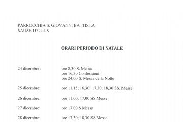 Orario Sante Messe per il periodo di Natale peresso la parrocchiale di San Givanni Battista