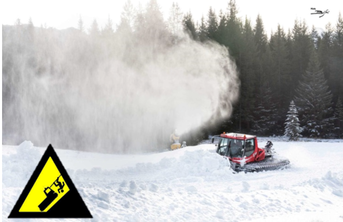 ATTENZIONE: Battipista al lavoro con verricelli, generatori di neve posizionati lungo le piste, ostacoli atipici e manto nevoso irregolare rappresentano un PERICOLO per eventuali escursionisti e sci alpinisti.