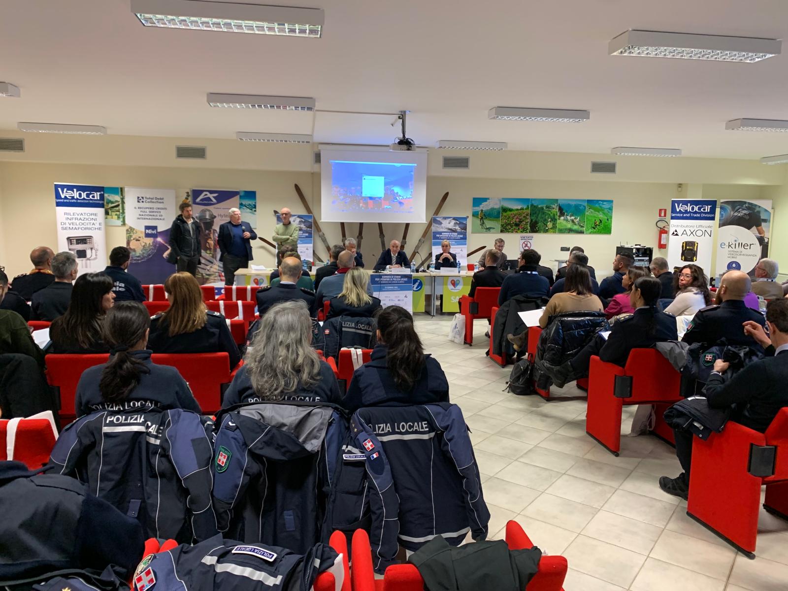 SAUZE D’OULX – Cambia solo la location, ma si conferma di grande successo anche la terza Giornata di studio per operatori di Polizia Locale “3° Seminario dei Comuni Olimpici”. La terza edizione del convegno si è tenuta giovedì 25 gennaio sempre presso il Comune di Sauze d’Oulx, ma nella nuova location della sala conferenze dell’Ufficio del Turismo. Un successo dettato dai numeri con un centinaio di adesioni tra Dirigenti ed Agenti della Polizia Locale, cui si sono uniti, come graditi ospiti, i rappresentanti di Carabinieri e Polizia di Stato e con otto stands del settore. Il convegno, organizzato dalla Maggioli Editore in collaborazione con l’Unione Montana Comuni Olimpici Via Lattea e con il Comune di Sauze d’Oulx, è stato aperto da Massimo Blanc, Comandante della Polizia Locale dell’Unione Montana Comuni Olimpici Vialattea che, con i suoi colleghi, è anche quest’anno il grande artefice dell’organizzazione e del successo dell’iniziativa. I saluti istituzionali sono stati portati dal Vicepresidente dell’Unione Montana Comuni Olimpici Vialattea nonché Sindaco di Cesana Roberto Vaglio e dal ViceSindaco di Sauze d’Oulx Marco Tintinelli. Un saluto a tutti i partecipanti è poi stato portato in collegamento telefonico dal Piero Gros che ha ricordato il 50° della nascita della “Valanga Azzurra” ed il 50° della sua vittoria in Coppa del Mondo.
