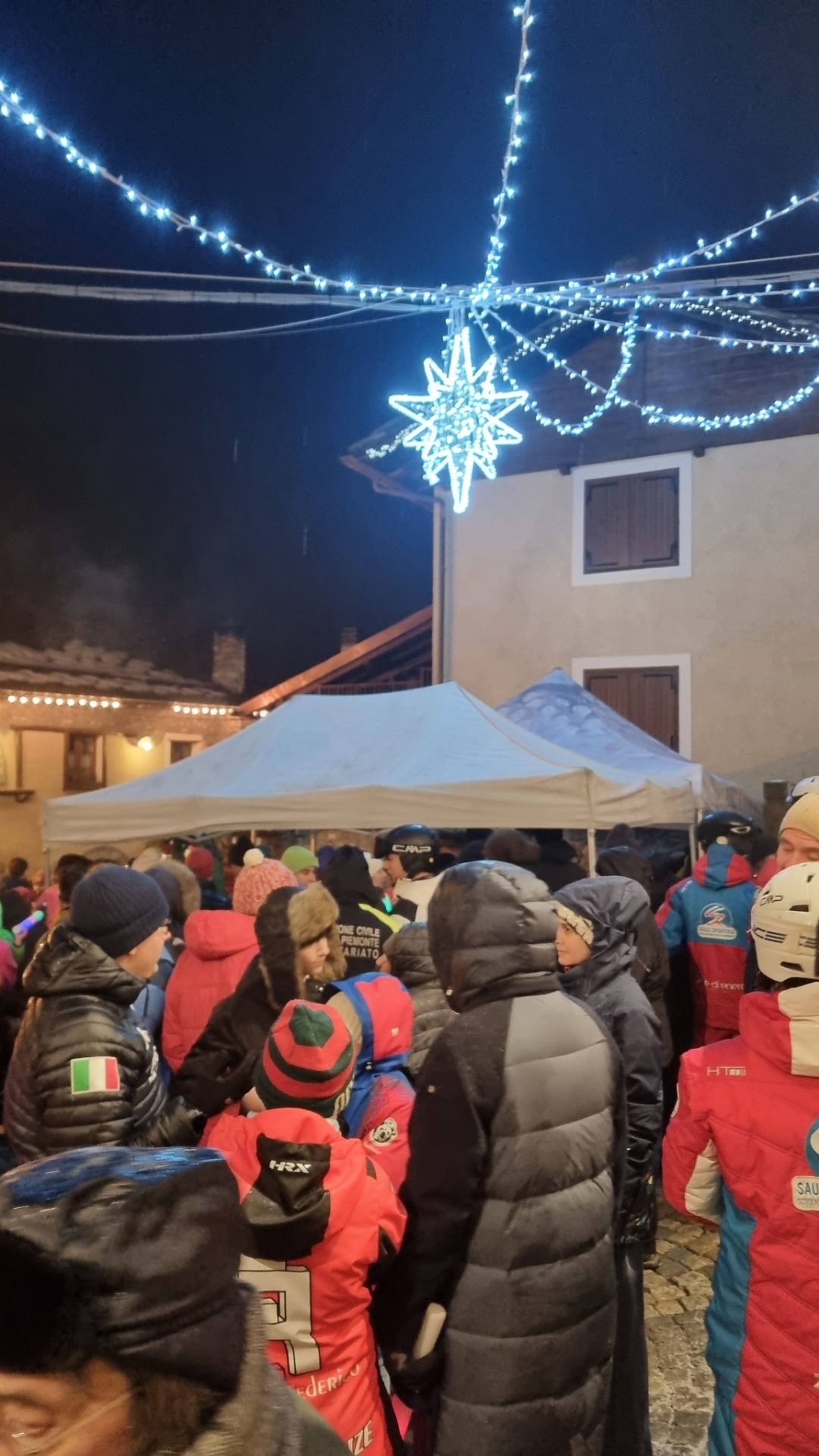 Alle 21 poi le torce a led dei bambini hanno accolto il lungo serpentone colorato di tricolore con la Fiaccolata offerta dalle Scuole di Sci e dagli Sci Club di Sauze d’Oulx con speaker coinvolgente Giulia Gros.