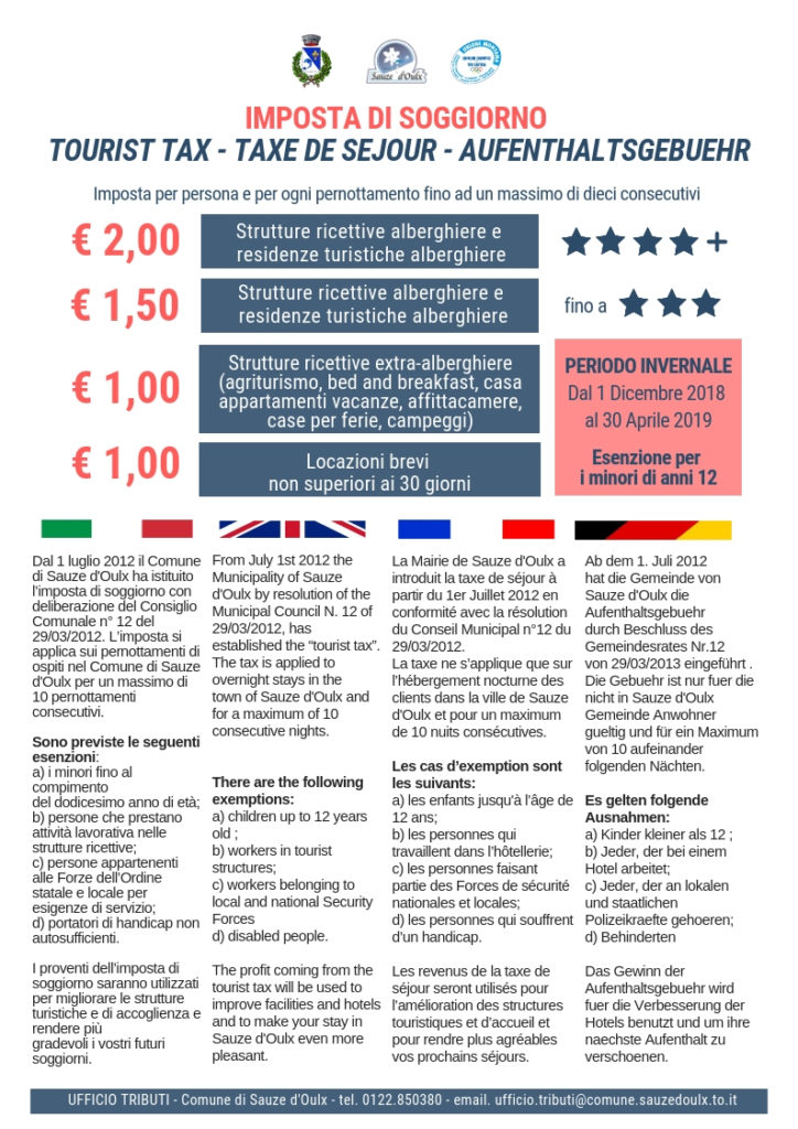 Per ogni informazione, Ufficio Tributi Comune di Sauze d’Oulx: