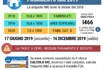 Per l'anno 2019 sono state confermate le aliquote IMU anno 2018.