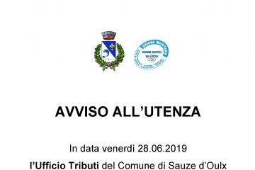 Per corso di formazione del personale, si avvisa che lo sportello all’utenza dell’Ufficio Tributi del Comune di Sauze d’Oulx