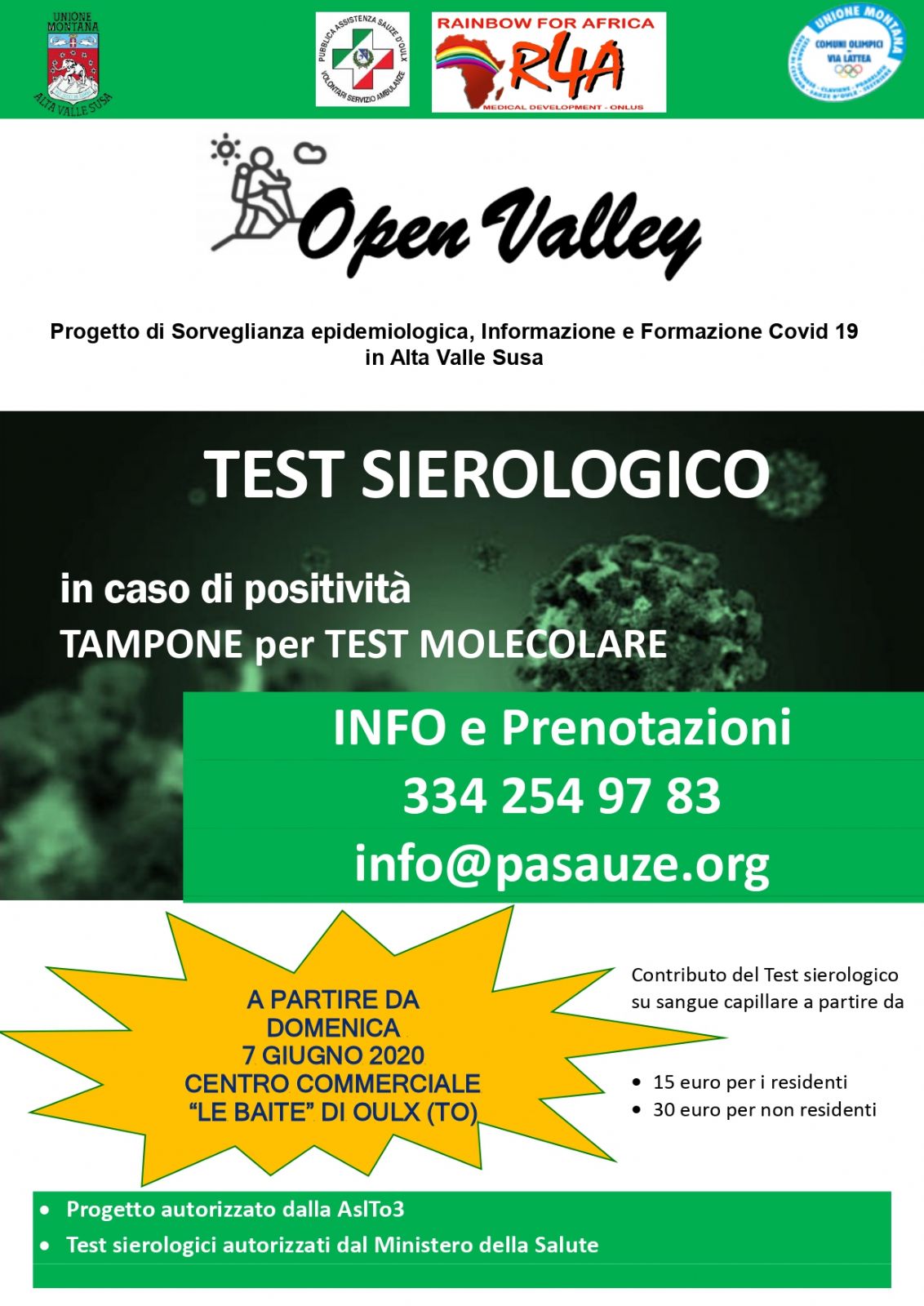OULX – “Open Valley”, il sogno di un’idea è oggi realtà. Partirà domenica 7 giugno il Progetto di Sorveglianza, Informazione e Formazione - Covid 19 in Alta Valle: uno screening epidemiologico per capire come la popolazione dell’Alta Valle Susa ha reagito al Covid – 19. Un esame che coinvolge, su base volontaria, i circa 14mila Cittadini residenti in Alta Valle di Susa e, attraverso un test rapido, permette di determinare il contatto che questa popolazione ha avuto con il virus. L'obiettivo di questo esame è, quindi, determinare la presenza degli anticorpi che rilevano l'attività del sistema immunitario quando viene a contatto con il Corona Virus, e precisamente i due valori definiti IgM e IgG.