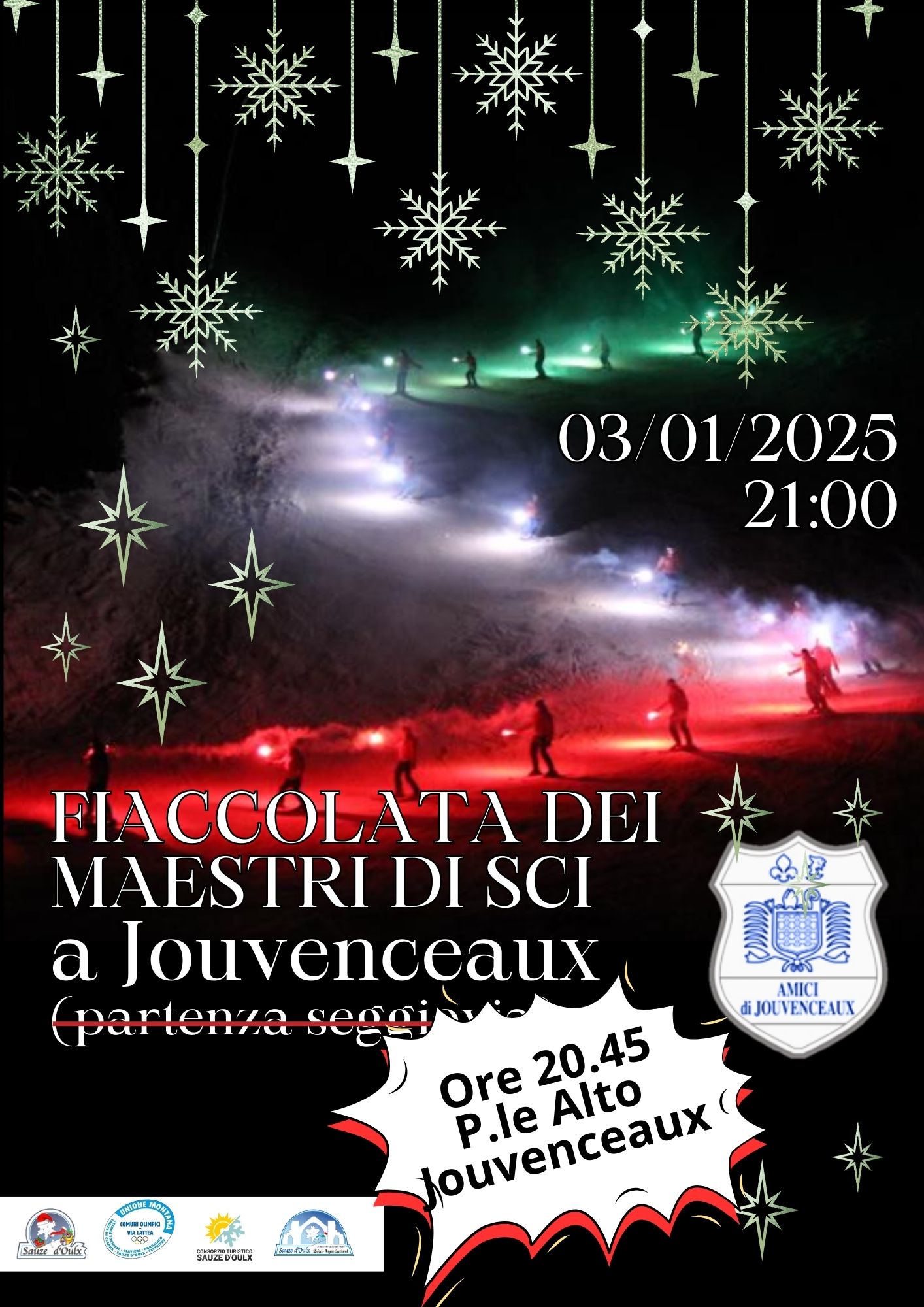 SAUZE D’OULX – Come vuole la tradizione a Sauze d’Oulx l’anno nuovo si apre con la tradizionale Fiaccolata dei Maestri di Sci a Jouvenceaux, così come l’anno si conclude con la fiaccolata dei Maestri di Sci nel cuore di Sauze d’Oulx.