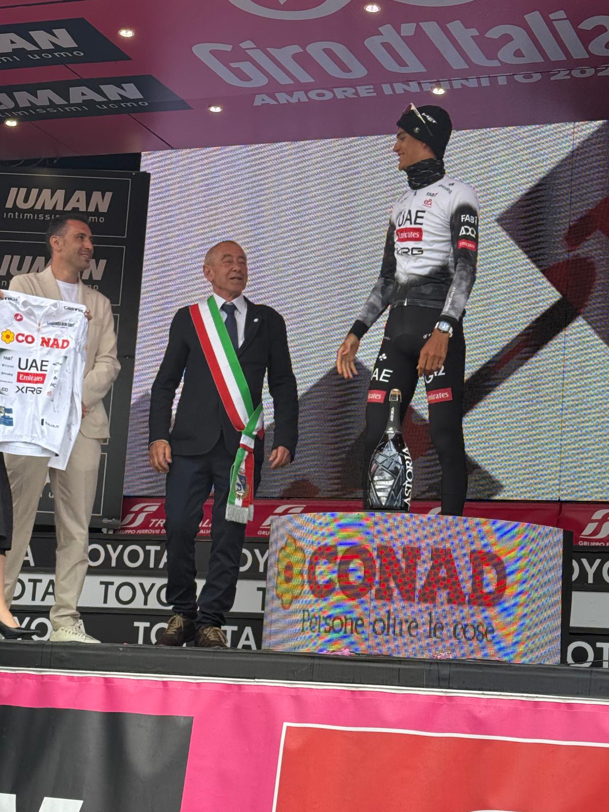 Il Sindaco di Sauze d’Oulx Mauro Meneguzzi ha poi premiato personalmente con la maglia bianca il miglior giovane del Giro d’Italia 2025 che è stato proprio Isaac Del Toro.
