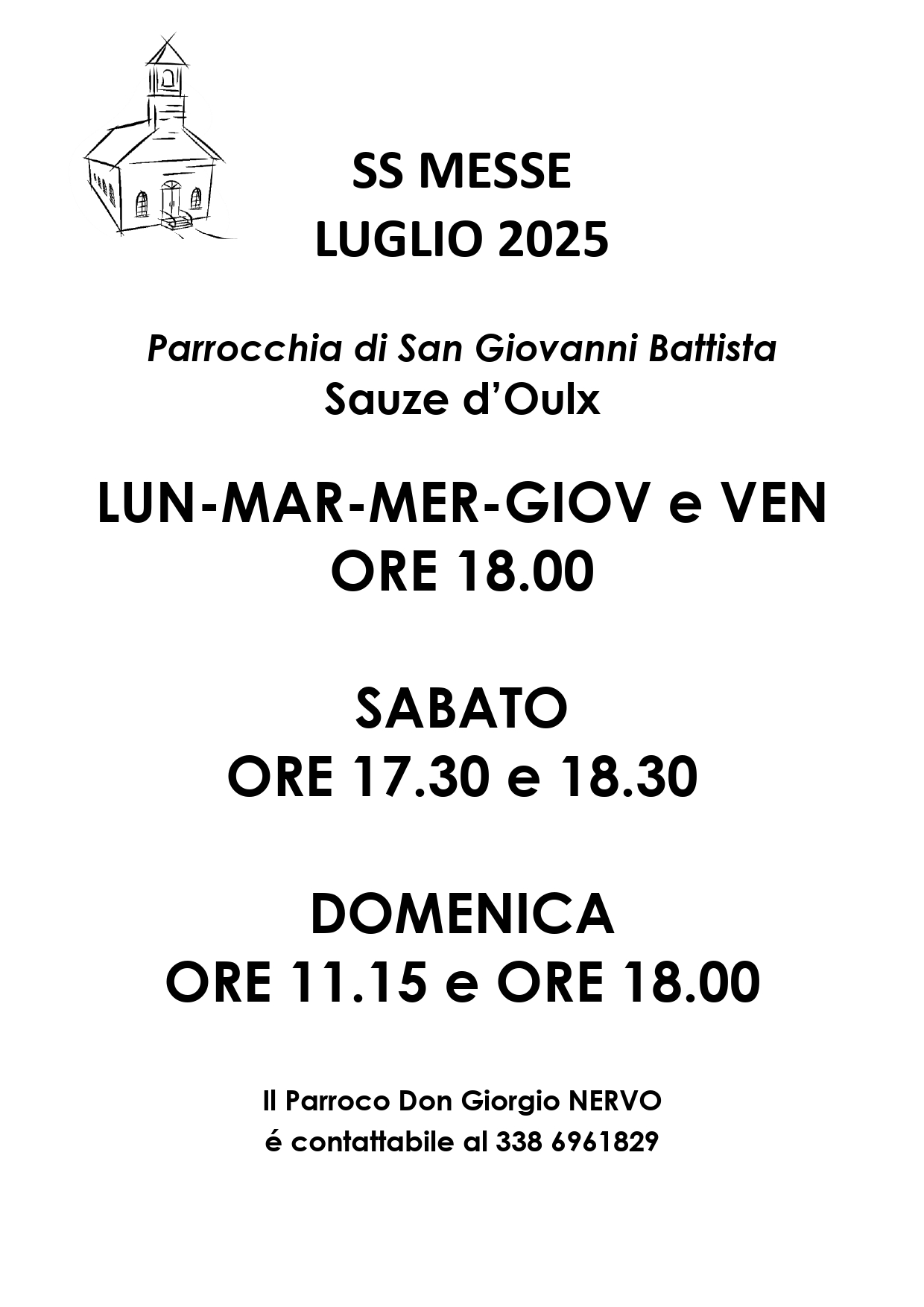 Orari messe Luglio 2025