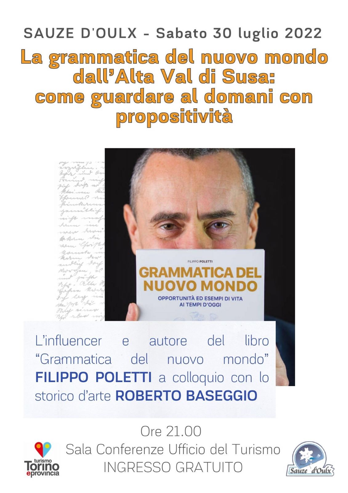 Presentazione del libro di Filippo POLETTI: GRAMMATICA DEL NUOVO MONDO. Opportunità ed esempi di vita ai tempi d'oggi. Nel libro, l’autore analizza 50 termini chiave, sistemati in ordine alfabetico, usati quotidianamente e il loro cambiamento di significato dovuto al modo di parlare influenzato dal virus e dal suo indotto. Ore 21.00 - Sala Conferenze dell’Ufficio del Turismo – V.le Genevris, 7