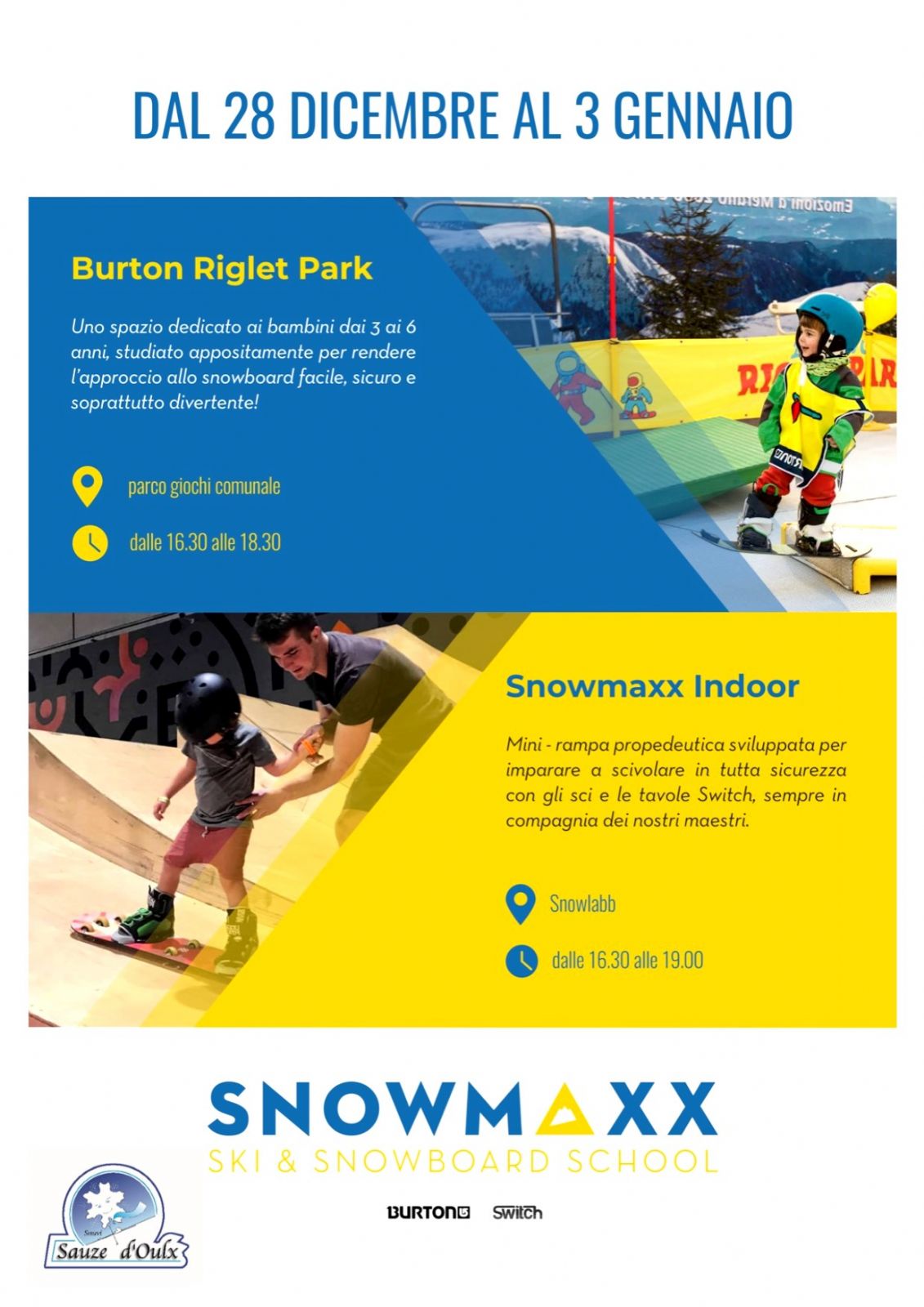 RIGLET BURTON - Spazio giochi propedeutico per imparare in tutta sicurezza a scivolare con lo SNOWBOARD organizzato dalla Scuola Sci & Snowboard SNOWMAXX.
