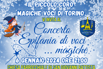 Concerto del Piccolo Coro Magiche Voci di Torino, che si terrà sabato 06 gennaio, presso la Chiesa Parrocchiale alle ore 21.00