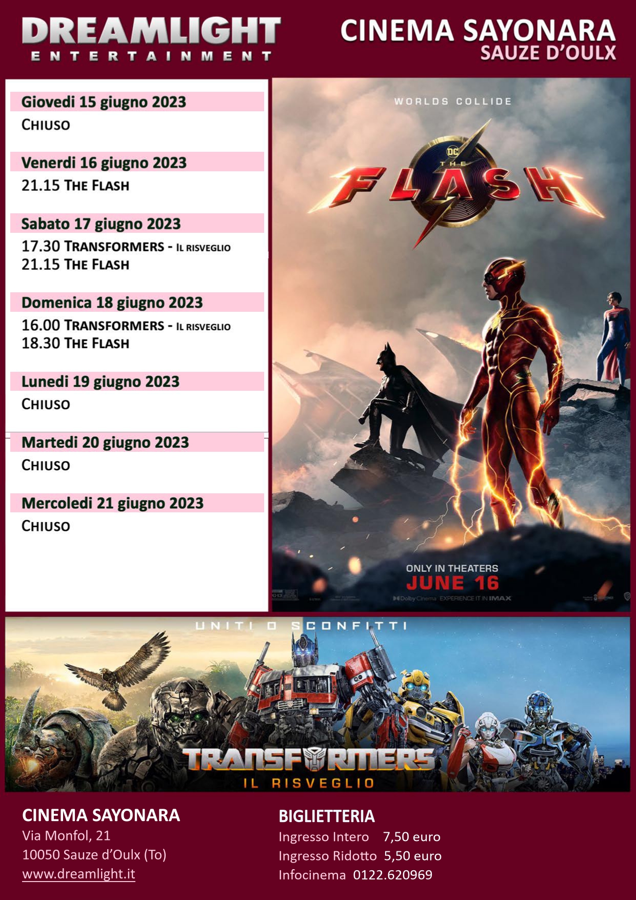 Programmazione Cinema Sayonara da giovedì 15 giugno a mercoledì 21 giugno