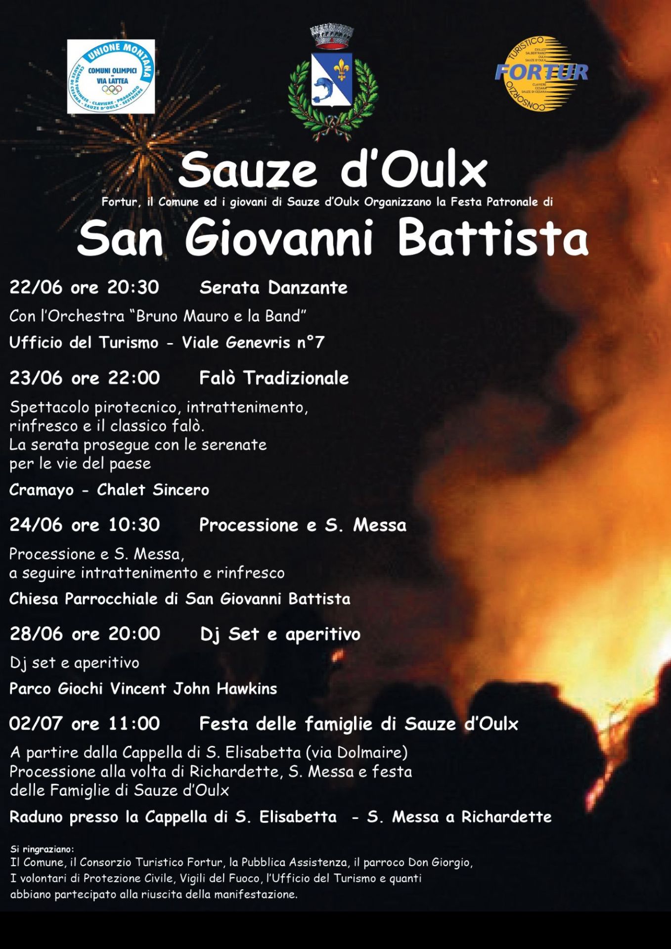 Il Consorzio Fortur, il Comune ed i giovani di Sauze d'Oulx organizzano la Festa Patronale di San Giovanni Battista. Qui di seguito il programma;