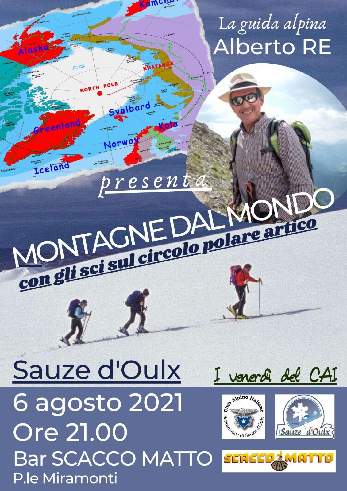 Serate informative e culturali organizzate dalla sottosezione CAI di Sauze d’Oulx. La Guida Alpina Albeto RE presenta: MONTAGNE DEL MONDO, CON GLI SCI SUL CIRCOLO POLARE ARTICO. Ore 21.00 - Sala Conferenze Ufficio del Turismo – V.le Genevris, 7