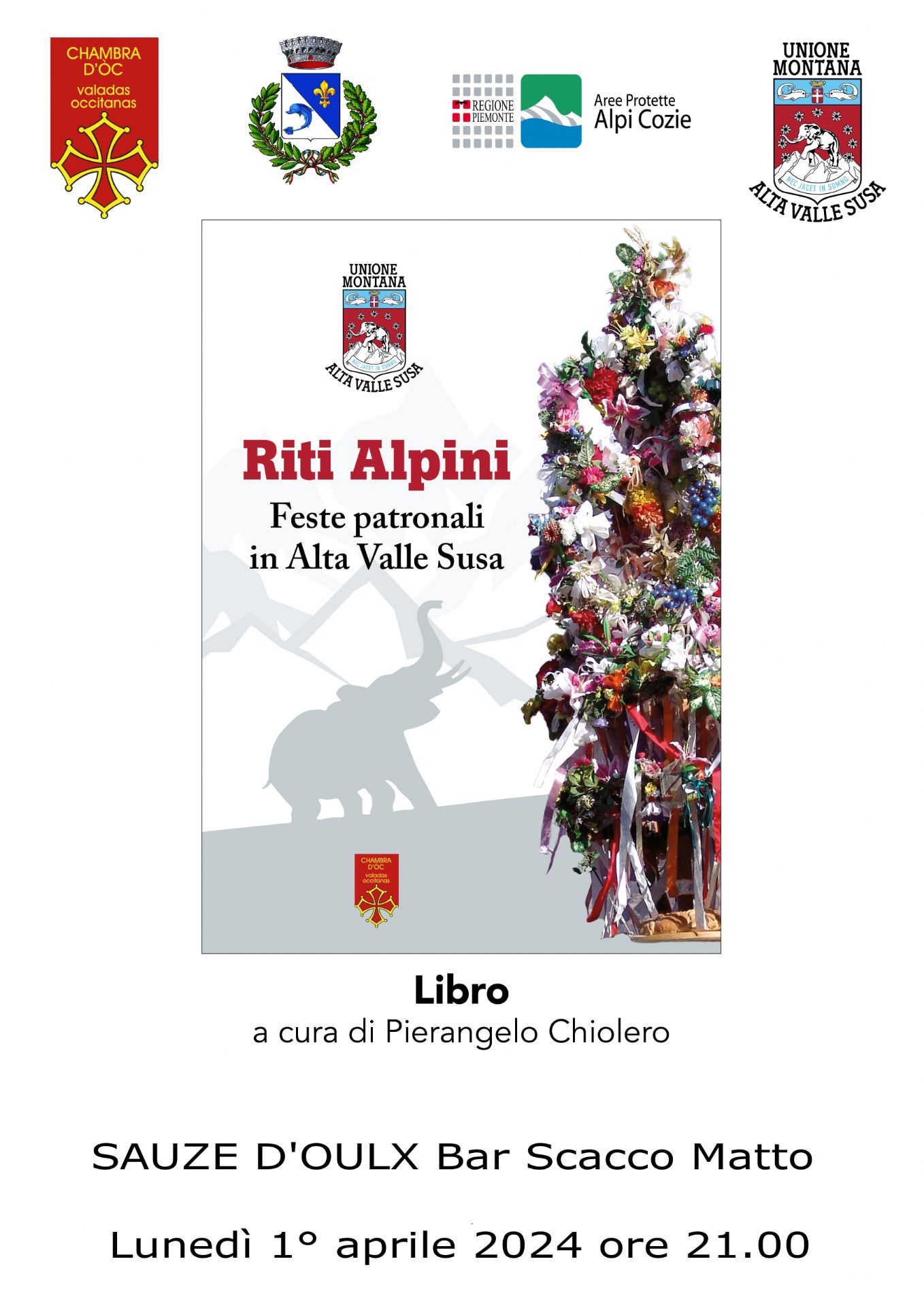 L‘Associazione Chambra d'Oc organizza la presentazione del libro: “Riti alpini - Feste patronali in Alta Valle Susa“ di Pierangelo Chiolero. L'appuntamento è per le ore 21.00 presso il Bar Scacco Matto - P.le Miramonti, 9