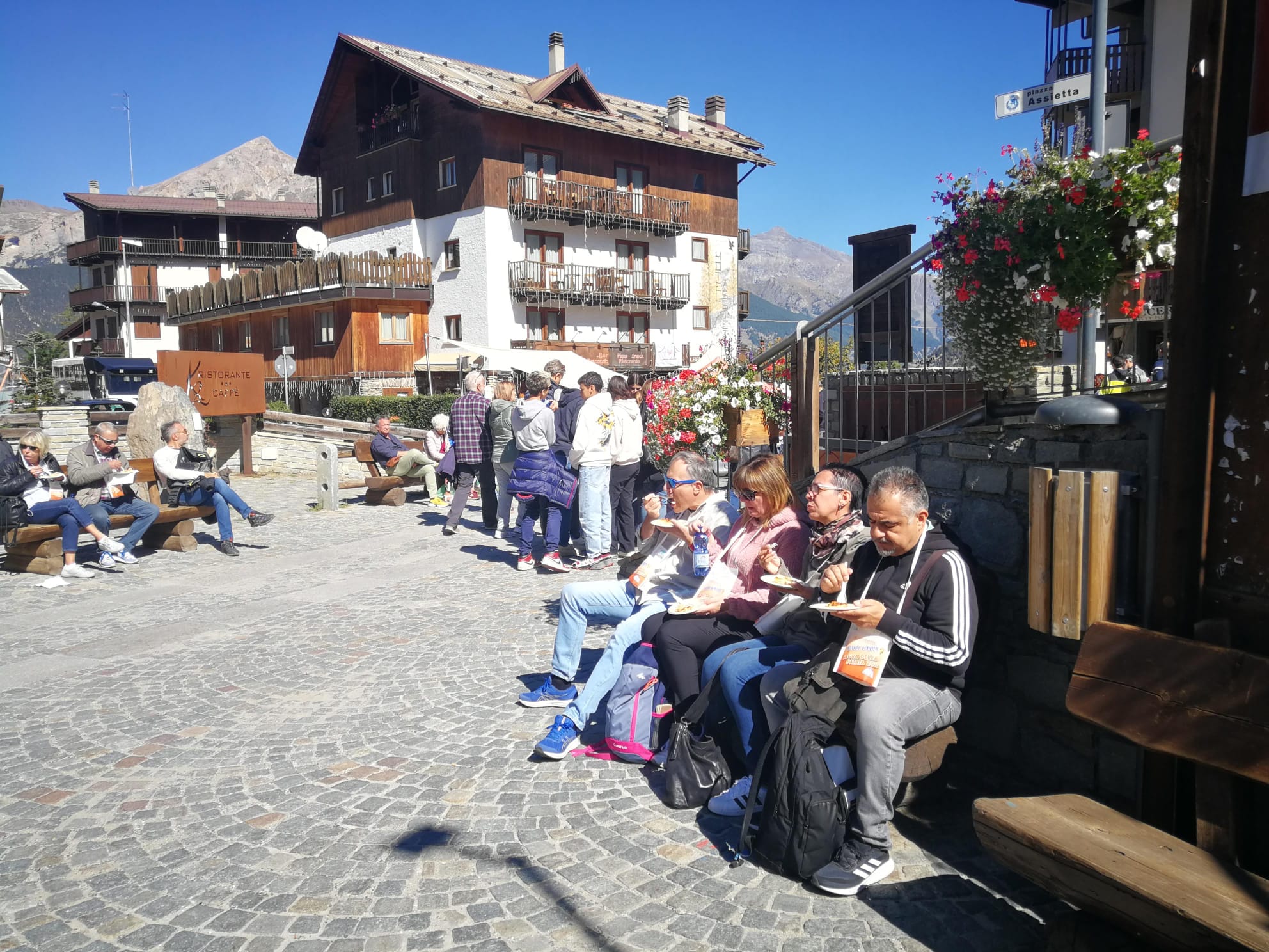 Prima tappa al ristorante ”Assietta” con le “Tartiflette”; al ristorante “La Vecchia Trattoria” “Patate al forno con formaggio d’Alpeggio”; terza tappa al ristorante “La Violetta” con “Gnocchi di patate al ragù di cinghiale” ma con possibilità di alternativa per vegetariani; quarta tappa al ristorante “La Seggiovia” dove verranno servite le “Schiacciate di patate con formaggio”; il tour si concluderà con la tappa finale al ristorante “Casa Mia Below” per le “Chiacchiere”. A chiudere il percorso gastronomico non può mancare il dolce che sarà la “Crostatina artigianale” preparata dalle pasticcerie “Gally” e “Valsesia”.