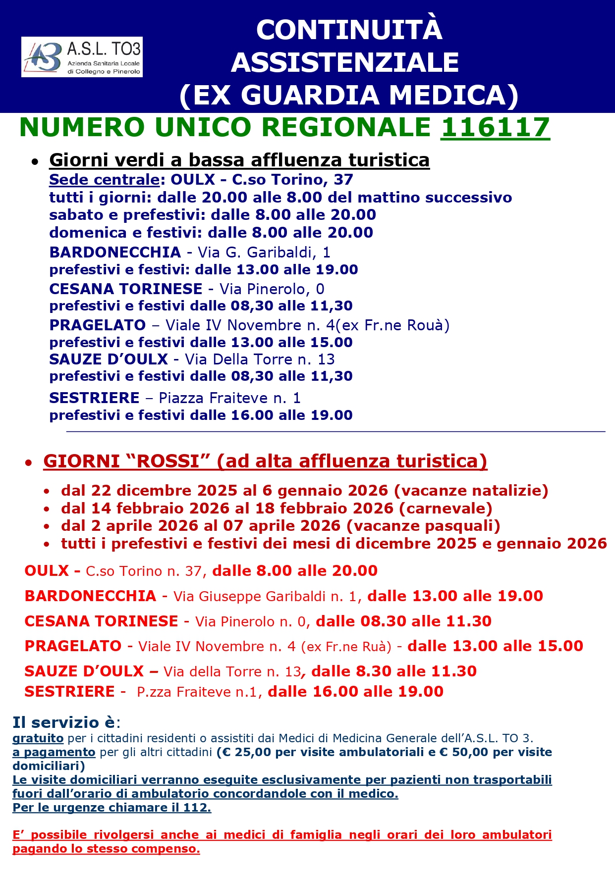 Continuità Assistenziale - Ex Guardia Medica - Montagne Olimpiche - Inverno 2025/2026