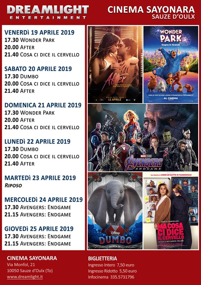 Programmazione da venerdì 19 aprile a giovedì 25 aprile