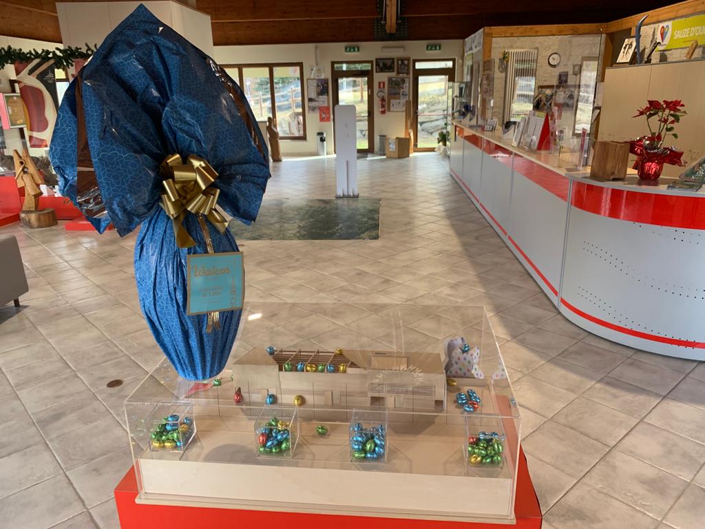 Quest’anno gli ovetti da contare si nascondono nel modellino del nuovo campo da calcio che fa bella mostra nei locali dell'Ufficio del Turismo di viale Genevris.